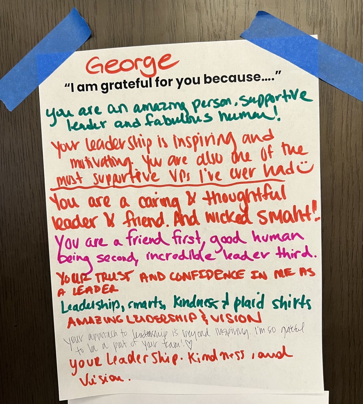 As part of this initiative, we started a gratitude board during a recent team retreat, providing space for team members to share why they appreciate one another. Reading their comments was an incredibly meaningful experience for me. I was humbled to see my name included among their expressions of gratitude. That moment reinforced a belief I hold strongly: trust and unity are not the result of chance. They are built through deliberate effort and intentional leadership.
